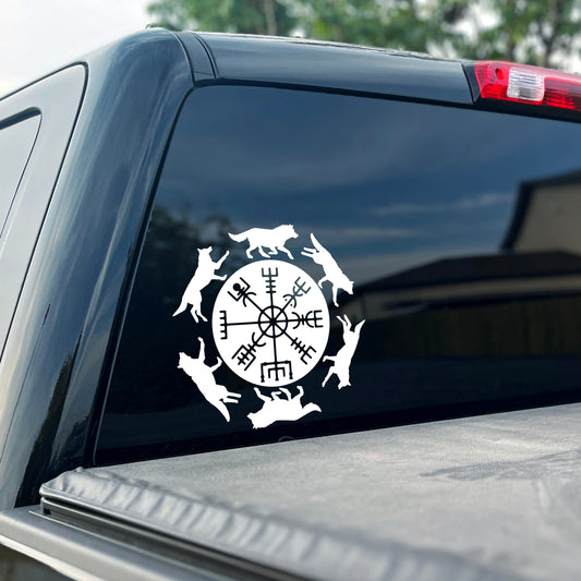 Wolves with Viking Compass Vinyl Decal